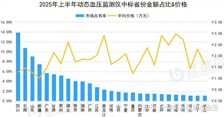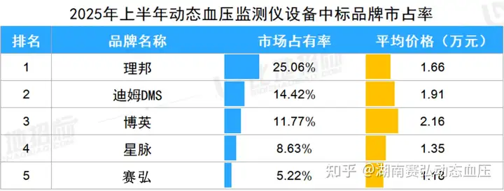 随着高血压患者基数的与日俱增和人们健康意识的觉醒,动态血压监测仪市场份额不断攀升。动态血压监测仪广泛被使用于医院、基层医疗机构、养老院和健康管理中心,机构对动态血压监测仪的需求加大。以下是2025上半年的具体数据:
